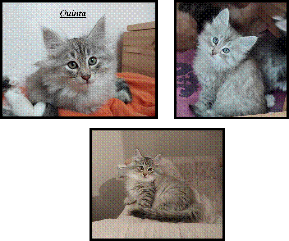 Quincy black smoke white booked Queenie amber silver torbie ticked booked Queen Mary black silver torbie cl. white booked Quinta black silver spotted booked Quintessa light amber silver ticked white booked